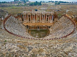 въглероден диоксид, отчасти на желязо и радиоактивни елементи. Близо над Памуккале се намират развалините на античния град Хиераполис (в превод - Свещен град), основан през 190 г. пр.н.е. от династията на Аталидите - владетелите на Пергамон. Градът бил популярен сред гърците и римляните, страдащите от кожни болести и ревматизъм. Едно от интересните съоръжения в Хиераполис е амфитеатъра. Първоначално той е построен на североизток от северната порта, но е бил разрушен от силно земетресение през 17 г. от н.е. След земетресението през 60 г. от н.е по време на царуването на император Тит Флавий е построен нов театър, издълбан в склона на хълма, на изток, като се използват и останките на ярусите на стария театър. Днес театърът е в процес на реставрация. Побира 10 000 зрители и е втория по големина след този в Ефес в Мала Азия. Следващото забележително съоръжение на града е прочутият му некропол, който се простира от северната до източната и южна част на стария град. Повечето от всичките 1 200 гробници са изградени от варовик. Нещо повече, некрополът е изпълнен със саркофази на високопоставени личности, включително Саркофагът на Марк Аврелий Амианос. По път посещение на Outlet Centre за текстилни изделия. Вечеря. Нощувка.