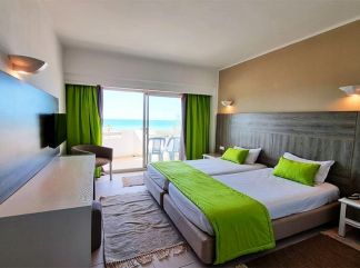 В стаите: Хотелът разполага с общо 330 стаи, разположени в четириетжна сграда с 2 асансьора - Standard Room (24-26 кв.м), Sea View Room (24-26 кв.м), Family Room (26-28 кв.м с една спалня), Superior Family Room (36-38 кв.м с две спални, отделени с врата). Всички стаи са оборудвани с климатик, телевизор, мини бар (ботилирана вода в деня на настаняване), баня с душ/вана, сешоар, сейф, балкон/тераса. Почистване на стаите - всеки ден.