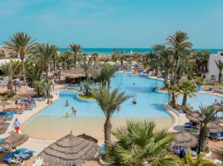 Разположение : Fiesta Beach се намира на един от най-красивите плажове на остров Джерба. Този ол инклузив хотел, проектиран като село Джербиен е с голяма зелена територия и широк великолепен плаж. Хотелът се намира в района на Мидун, на 8 км от центъра на града, на 15 км от столицата на острова Хумт Сук. Летище Джерба-Зарзис се намира на 25 км. Перфектен избор за семейства с деца.
