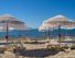 Собствен, на места пясъчен и на места каменист плаж, първа брегова линия. Неравномерно навлизане в морето: има зони с каменни блокове и зони с чисто и плавно с пясъчно дъно. За периода от юни до септември хотелът поставя понтонна платформа. Чадъри, шезлонги и матраци на плажа и при басейна - безплатно. Плажни кърпи - срещу депозит.
