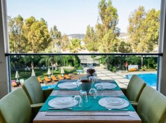 Разположение: На 35 км от летището и на 1 км от центъра на Бодрум, в село Гюмбет, на 100 м от плажа. Територията на хотела е разделена от път с подземен проход.