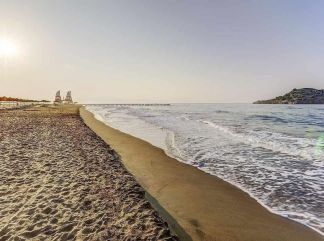 Плаж: Собствен пясъчен плаж на 50 м от хотела (1 брегова линия). Дължина 280 м. Има кей. Плажното оборудване и хавлиите са безплатни.