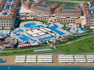 На територията на хотела има основен ресторант, диетично меню, 5 ресторанта a la carte (турски, далекоизточен, италиански, рибен, мексикански – с предварително записване, за едноседмичен престой посещение на един от ресторантите 1 път – безплатно), 8 бара
